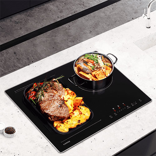 인덕션의 화력과 하이라이트의 자유로운 용기 선택이 모두 가능한 하이브리드 화구!